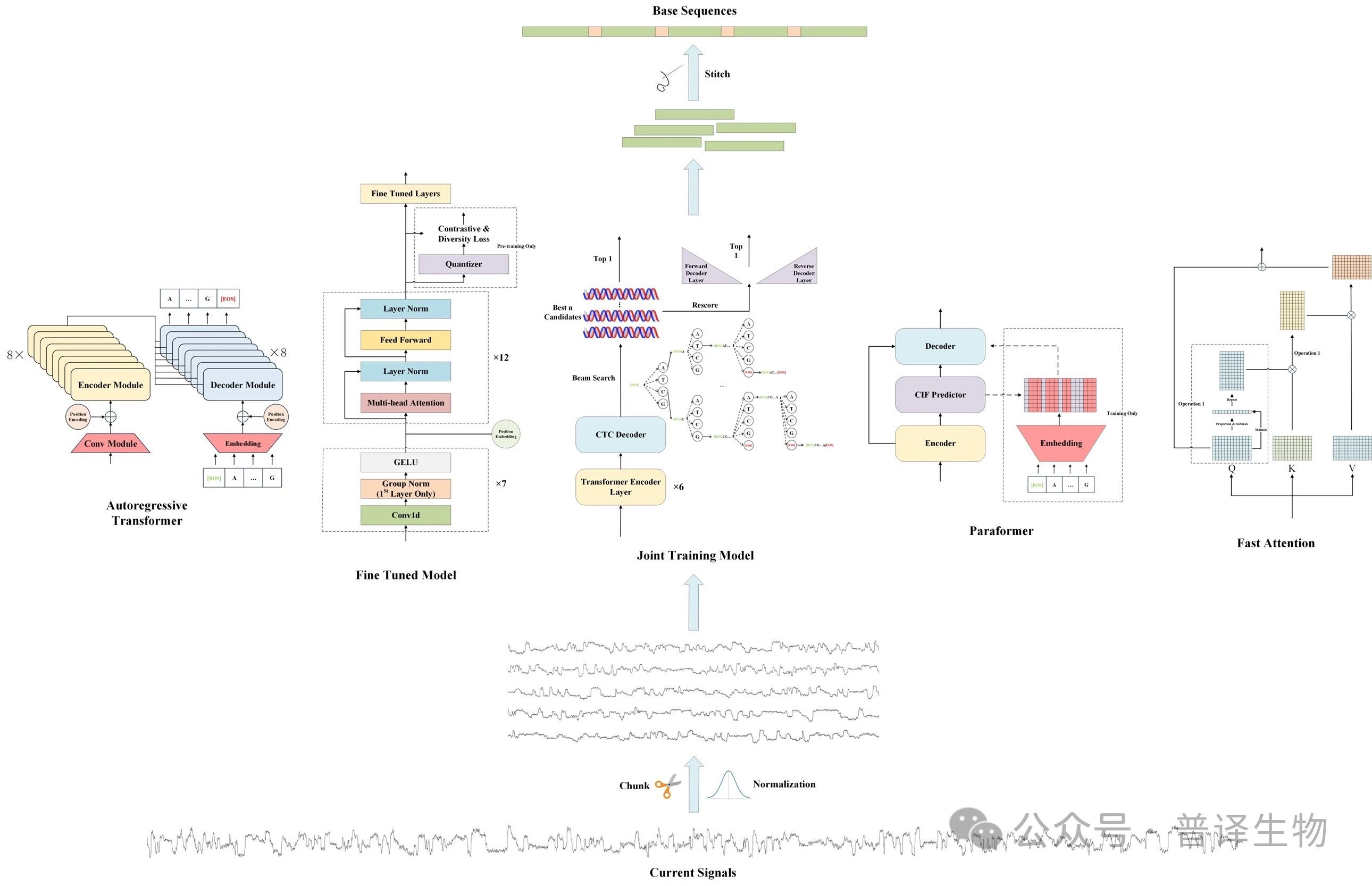 2024年9月25日,普译生物与中国科学院生物物理研究所合作在《Computational and Structural Biotechnology Journal》杂志在线发表了题为“BaseNet: A Transformer-Based Toolkit for Nanopore Sequencing Signal Decoding”的研究论文。该研究提出了一款基于多种最新Transformer算法的纳米孔测序信号解码工具包BaseNet(图1),包括: