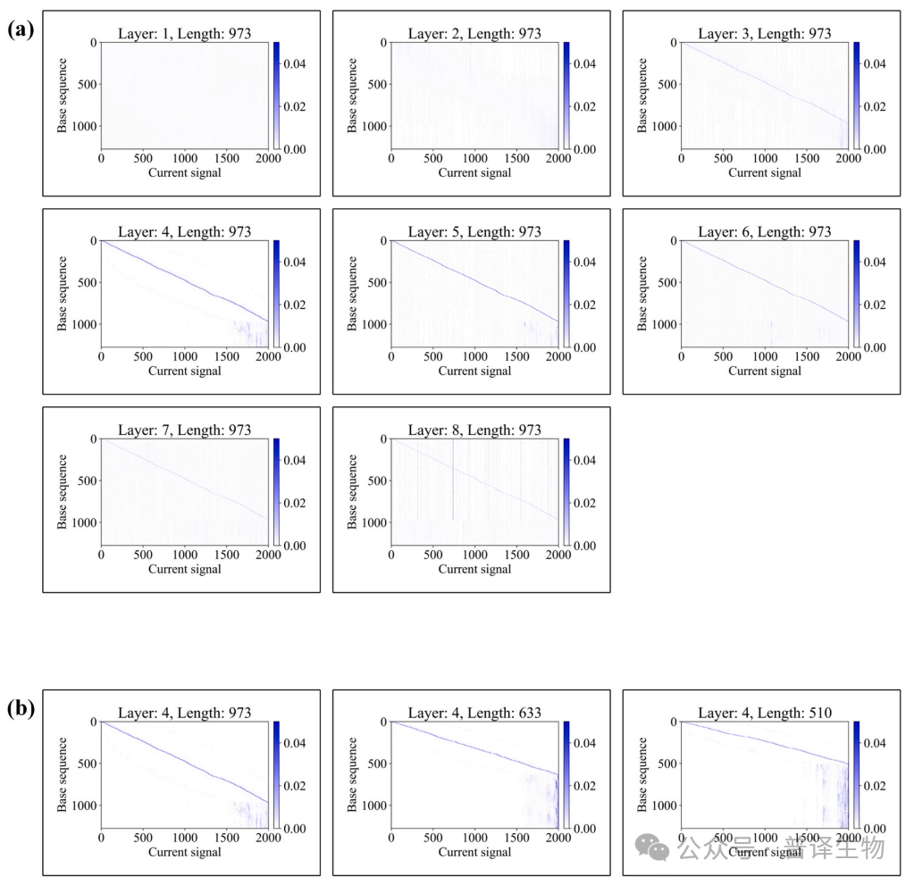 研究团队在相同基准数据集上进行了严格的性能评估,BaseNet所包含的Fine-tuned model优于最新Bonito CRF模型,Joint-CTC model 和Fast-CRF model 性能优于SACall(图4a)。此外,在长读长情况下,BaseNet所开发模型表现出更优异性能(图4b)。上述测试结果表明与现有其他解码算法相比,BaseNet表现出更好的解码性能。