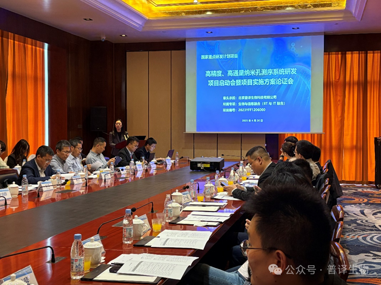 由北京普译生物科技有限公司牵头,联合中国农业大学、中国科学院半导体研究所、中南大学等共10家单位共同承担的国家重点研发计划“生物与信息融合(BT与IT融合)”专项“高精度、高通量纳米孔测序系统研发”项目启动会暨实施方案论证会于4月26日在北京成功召开。国家自然科学基金委员会信息科学部三处王睿项目主任,中国生物技术发展中心医疗器械处武瑞君项目主管等相关领导出席了会议。项目专家组由中国科学院北京基因组研究所赵文明研究员、中国食品药品检定研究院黄杰研究员、中国科学院生物物理研究所刘江研究员、微软研究院刘海广首席研究员、北京师范大学王晓群教授、清华大学向烨研究员和北京医院肖飞研究员组成。与会领导以及项目专家组成员共同探讨了纳米孔基因测序技术所面临的机遇与挑战,创新与突破,并对“高精度、高通量纳米孔测序系统研发”项目寄予厚望。会议由北京普译生物科技有限公司总经理、项目负责人王大千博士主持。